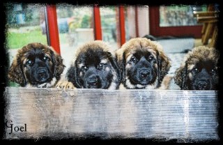 Hündinnen, 7 Wochen alt, v.l.n.r.: Dishna, Demia, Donga, Danira |